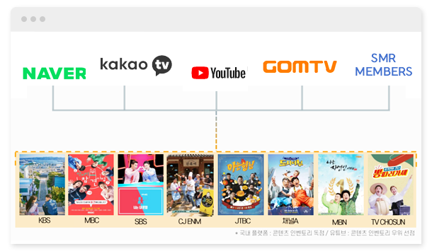 국내 주요 방송사의 콘텐츠를 네이버, 유튜브 등